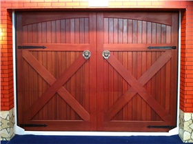 2、提升档次:从结构上来说,实木车库门门板的背面为“田”字形铝架,结合了铝架的轻巧,实木的自然风格,提升别墅档次,与别墅的风格自然融为一体。