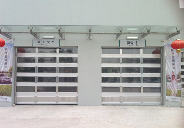 (4)透明板材:采用德国原料聚碳酸酯PC板,厚度为4mm-5mm,可根据门宽及及窗宽来选择.有优良的抗紫外线功能,其抗冲击力是钢化玻璃的100倍。
