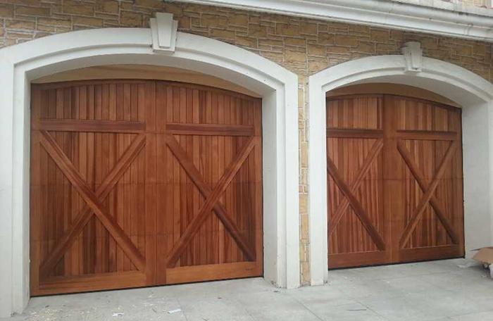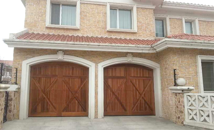 2、提升档次:从结构上来说,实木车库门门板的背面为“田”字形铝架,结合了铝架的轻巧,实木的自然风格,提升别墅档次,与别墅的风格自然融为一体。